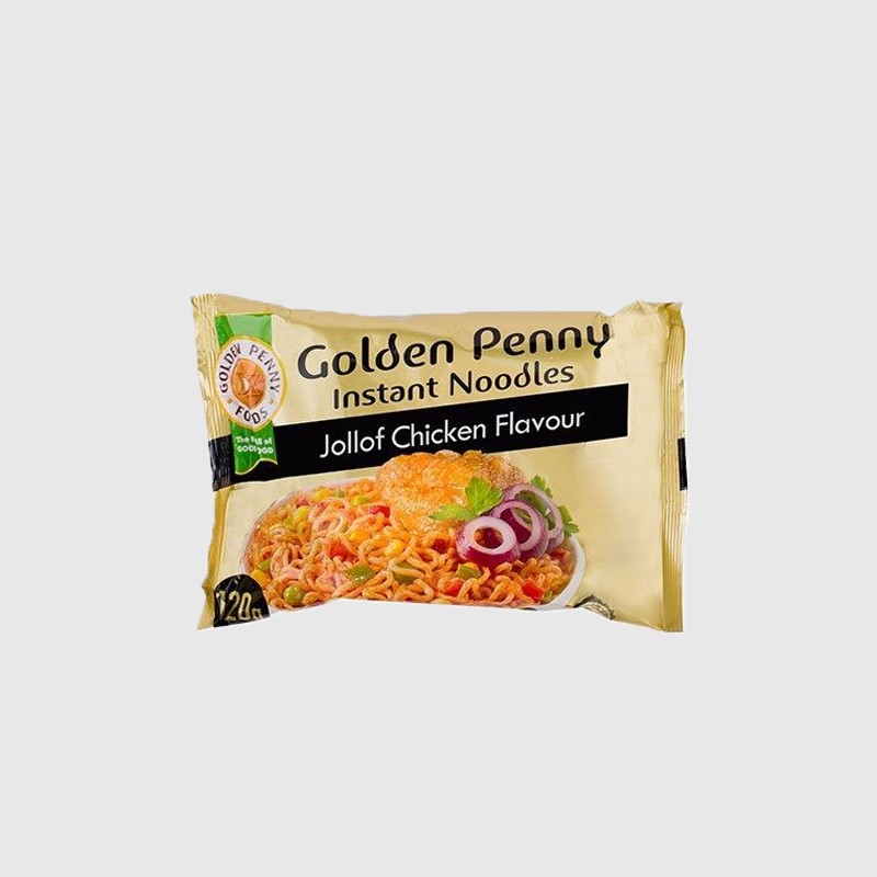 GOLDEN PENNY JOLLOF CHICKEN NOODLES 120G offers a delicious fusion of chicken and jollof flavors in a convenient, larger-sized instant noodle pack. The 120G size is perfect for satisfying bigger appetites or sharing with loved ones. Its bold and savory seasoning delivers an authentic jollof experience combined with the comforting taste of chicken.