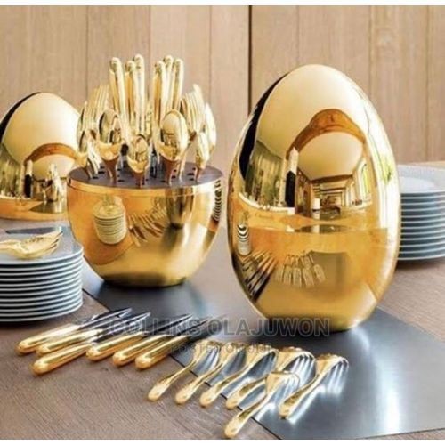 The Nine 24-Pieces Luxury Flatware Cutlery Set in Egg Shape is a stunning and sophisticated collection designed to bring both elegance and functionality to your dining table. This set includes 24 high-quality pieces, offering everything you need for a complete dining experience—dinner forks, knives, soup spoons, dessert spoons, and teaspoons. Each piece is uniquely crafted with an elegant egg-shaped design, adding a distinctive touch of style to your table settings, making it perfect for special occasions, formal dinners, or upscale gatherings.
