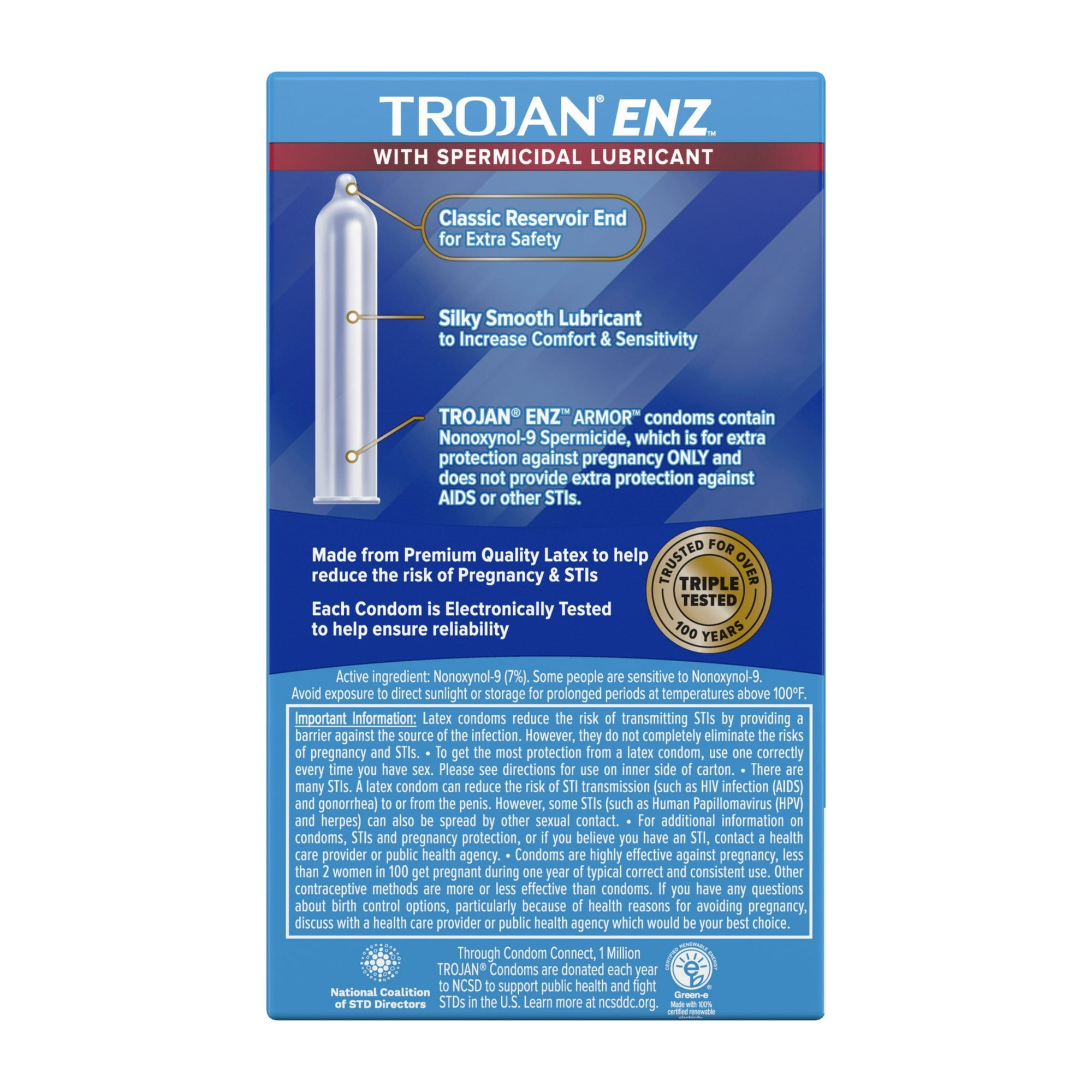 Trojan Spermicidal Condoms are engineered to provide enhanced protection for individuals who prioritize safety and peace of mind during intimacy. Featuring Nonoxynol-9, a widely used spermicidal agent, these condoms deliver added protection by immobilizing sperm, offering a second line of defense against unintended pregnancies. Additionally, they act as a barrier to reduce the risk of sexually transmitted infections (STIs).